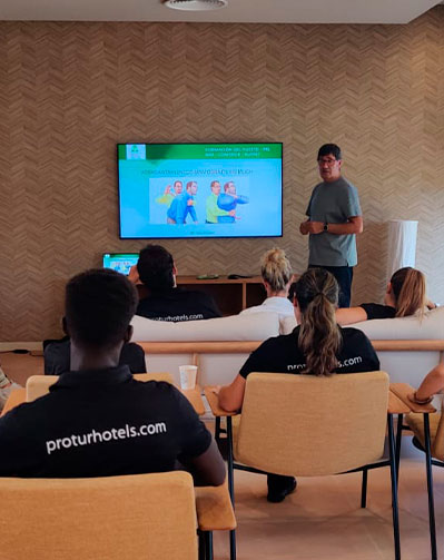 - Inclusión Social Activa: Colaboramos con la Fundación Adecco, ASPAS y APROSCOM para la inserción laboral. Actualmente, el 12,55% de nuestra plantilla son personas con discapacidad, integradas plenamente en la operativa de los hoteles.